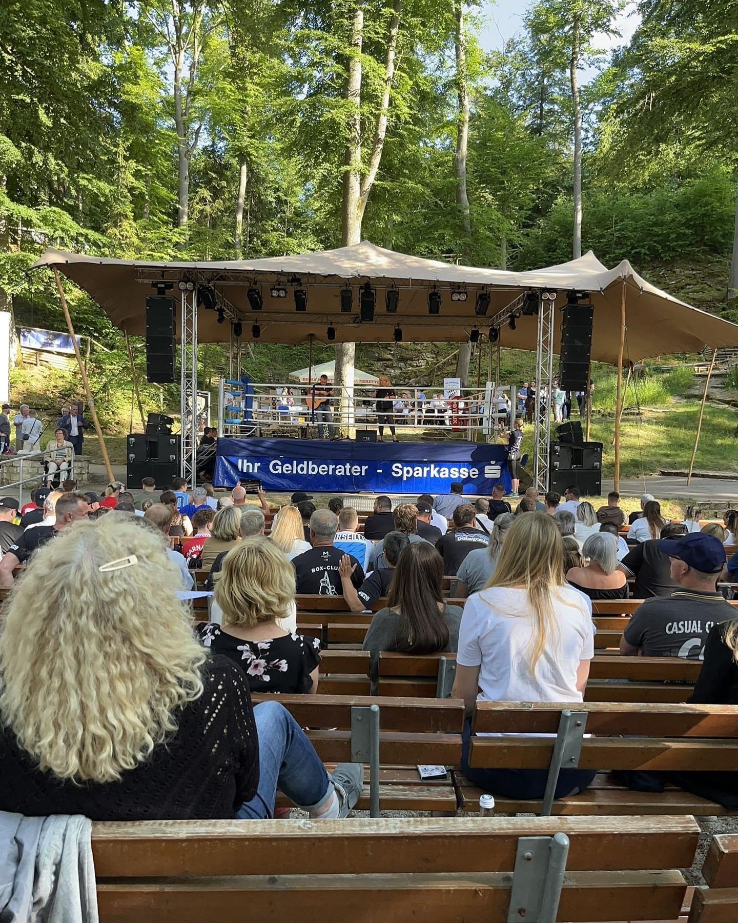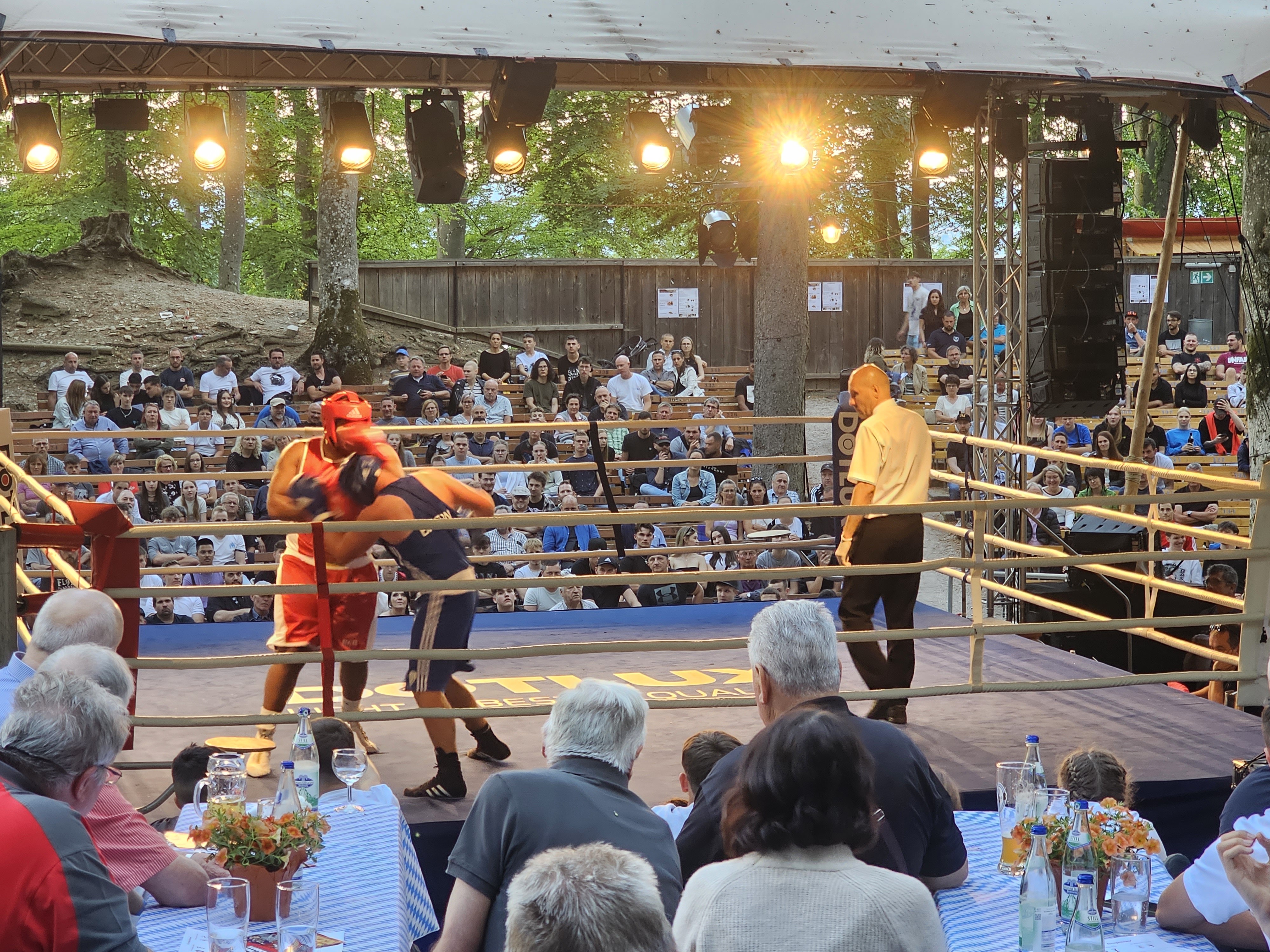 Als alle Grußworte und Würdigungen zum 100-jährigen Jubiläum des Bayerischen Boxverbandes (BABV) gesprochen waren und er offiziell die überwiegend jungen Boxer im Ring begrüßt hatte, fiel auch bei Philipp Lang die Anspannung ab. Der Vorsitzende des ausrichtenden BC Weißenburg und seine Mitstreiter aus dem Verein und des Verbands waren schon nervös vor der Premiere des Boxens im Bergwaldtheater. Ein nicht gerade kleiner (finanzieller) Aufwand habe dahinter-gesteckt, ehe es am Samstagabend im Ring vor der herrlichen Bergwaldkulisse losgehen konnte.