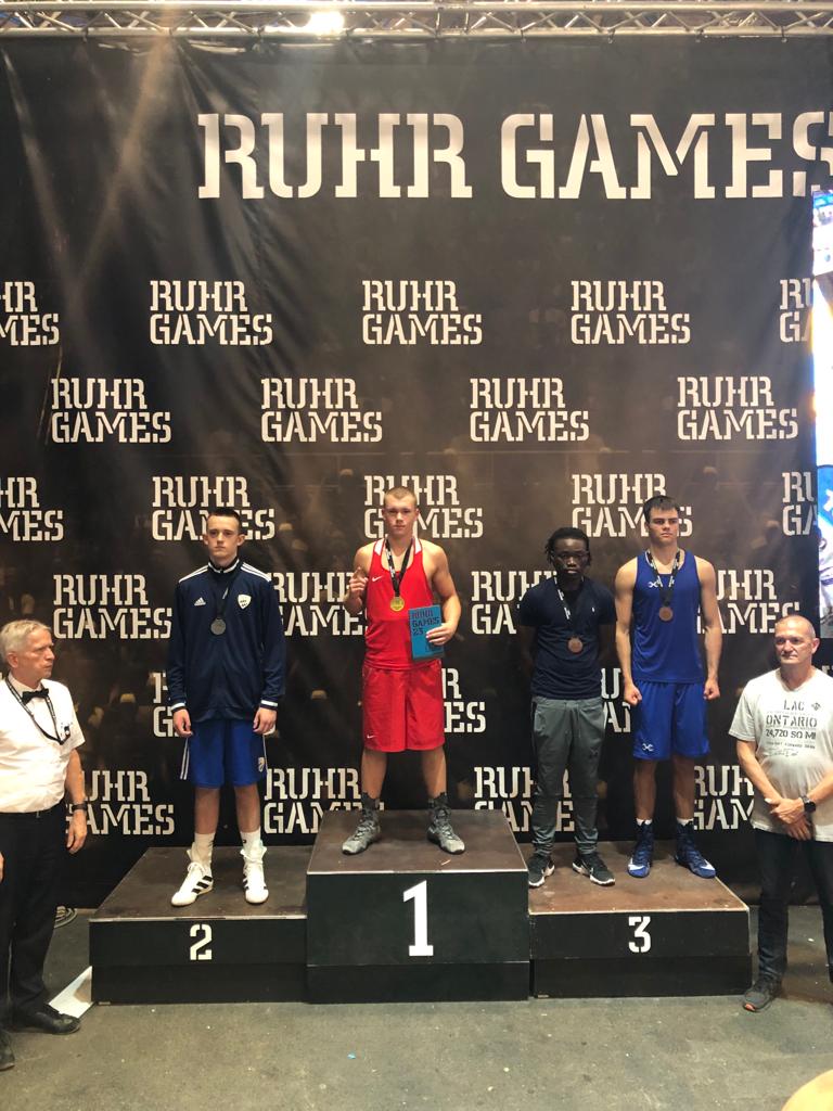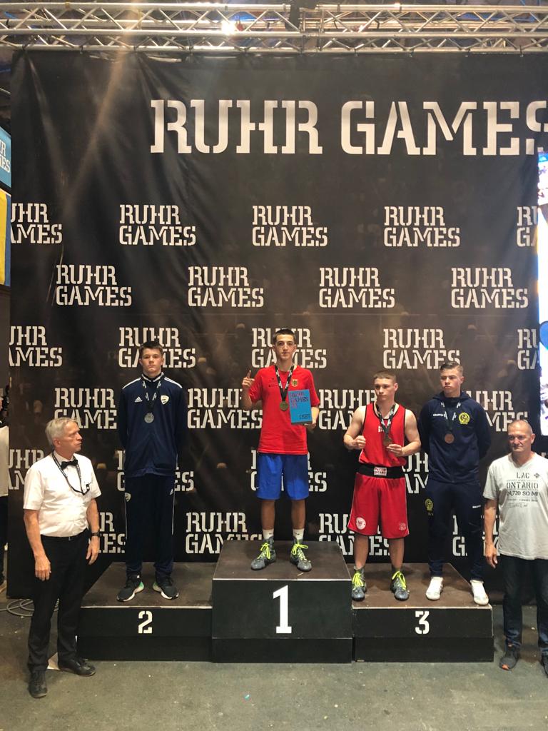 Emal startete gewohnt stark in das Turnier, überzeugte mit seiner durchgängigen Kampfesführung sowie seiner Distanz- und Raumkontrolle im Ring. Auch konditionell präsentierte er sich bärenstark, dadurch konnte er über die gesamte Wettkampfdauer seine Konzentration hoch halten. Nach zwei Siegen gegen Gegner aus Deutschland hatte er im letzten Kampf einen Boxer aus Dänemark. Die Skandinavier sind dafür bekannt konditionell auf einem sehr hohen Niveau zu boxen und sich auch technisch-taktisch und strategisch sehr gut ausgebildet. Hier präsentierte sich nach einem beherzten und schnellen Gefecht, welches er sehr knapp verlor, das fehlende Mosaiksteinchen in seinem Portfolio – fight fire with fire. Er hat das erkannt und wird bis zur U17-EM, für die er sich direkt qualifizieren konnte, beheben, er ist ein sehr talentierter, ehrgeiziger und fleißiger junger Mann.