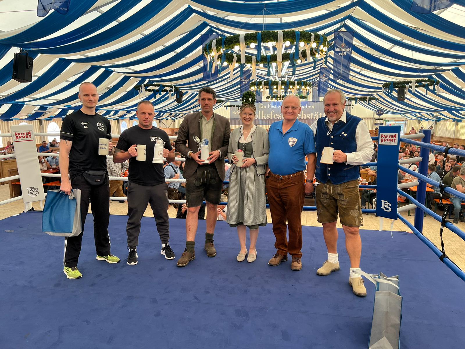 Boxsport in Eichstätt auf einem sehr hohen Niveau beim Traditionellen Volksfestboxen in Eichstätt am 3. September 2023 vor fast 1300 Zuschauer . Der Landesverband Bayern machte diesen Ländervergleich zum 100 - jährigen bestehen des Bayerischen Boxverbandes . Es wurden in verschiedenen Alters und Gewichtsklassen zehn Kämpfe ausgetragen auf sehr hohem Niveau .Die Athleten/in von von den Landesverbänden Bayern und Baden -Württemberg zeigen sich sportlich sowie konditionell und guter Verfassung und somit wurde dem Publikum sehr guter Boxsport im Festzelt geboten das die Zuschauer begeistert mit gegangen und Applaus gespendet haben für die Aktionen der Kämpfer/inn . Es waren tolle 10 Fights an diesem Sonntagvormittag und hier kann man und das Publikum war mehr als begeistert und zufrieden , mein Dank gilt auch dem Ausrichter BC Eichstätt und der Federführung des 1. Vorsitzenden Gerhard Heubusch mit seinem gesamten Orga-Team und allen Funktionären , Trainern , Betreuern den Athleten/innen der Gastmannschaft aus Baden Württemberg,dem Kampfgericht , Ringärzte und alle die zu diesem Box- Ländervergleich beigetragen haben.