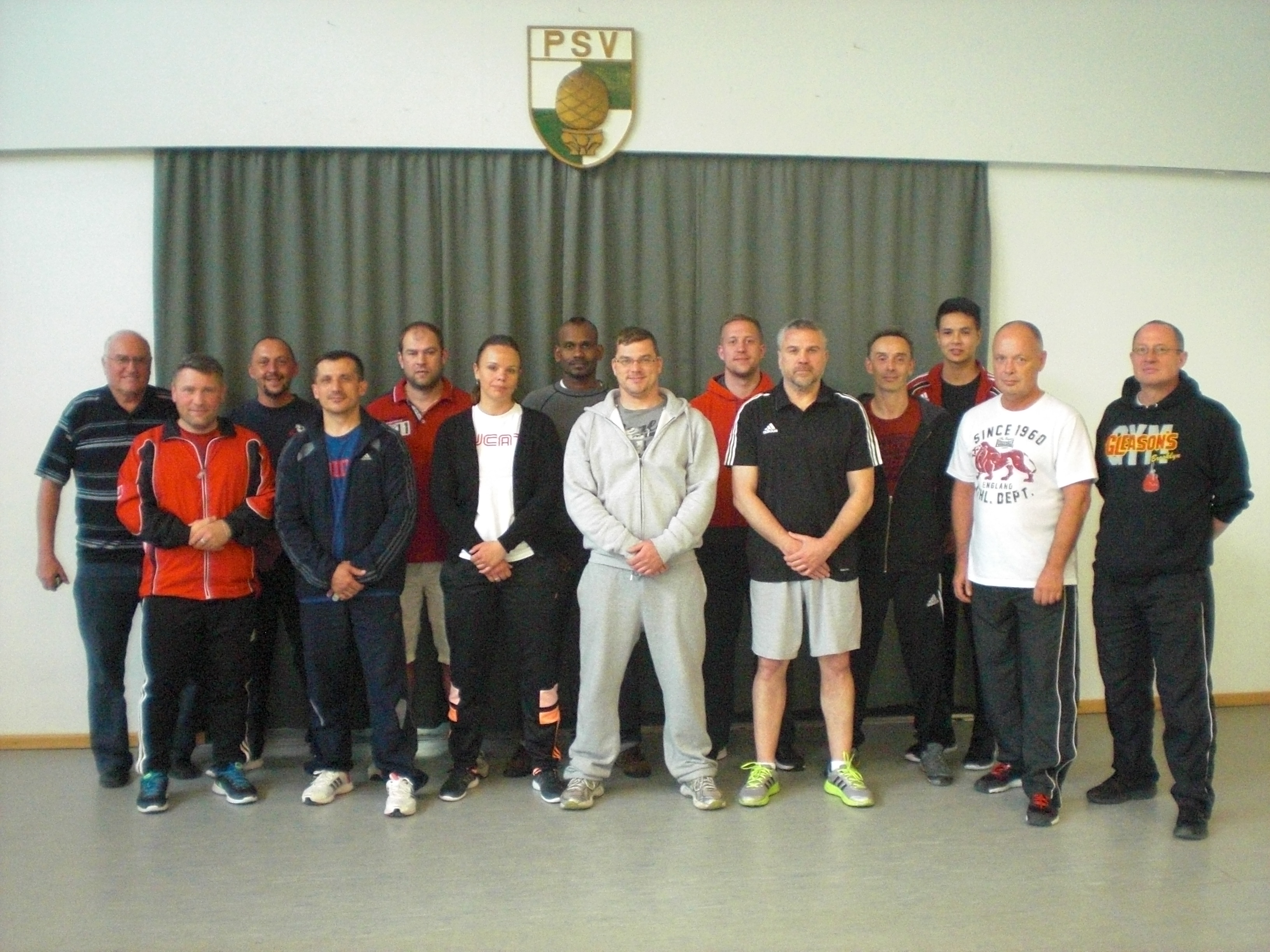 Stephan Feldmeier bildet in seinem ersten Lehrgang als Lehrwart in den Ausbildungsstätten Hotel ADLER und dem Trainingszentrum des PSV Augsburg 14 neue C-Trainer-Leistungssport aus.