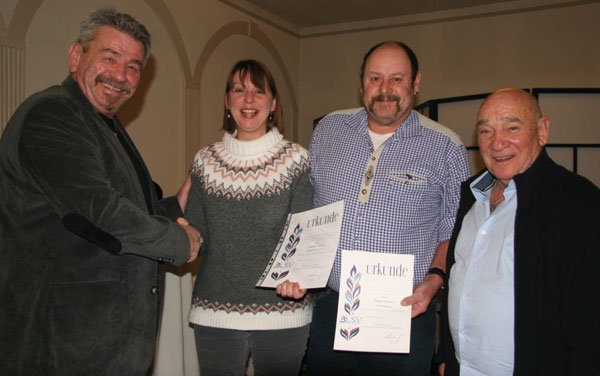 Von links: 2. Landessportwart Atschi Hörauf, Jugendwartin Susanne Gorani, Harry Zernetsch (BSV Obernburg), Bezirkssportwart Hans Bales.
