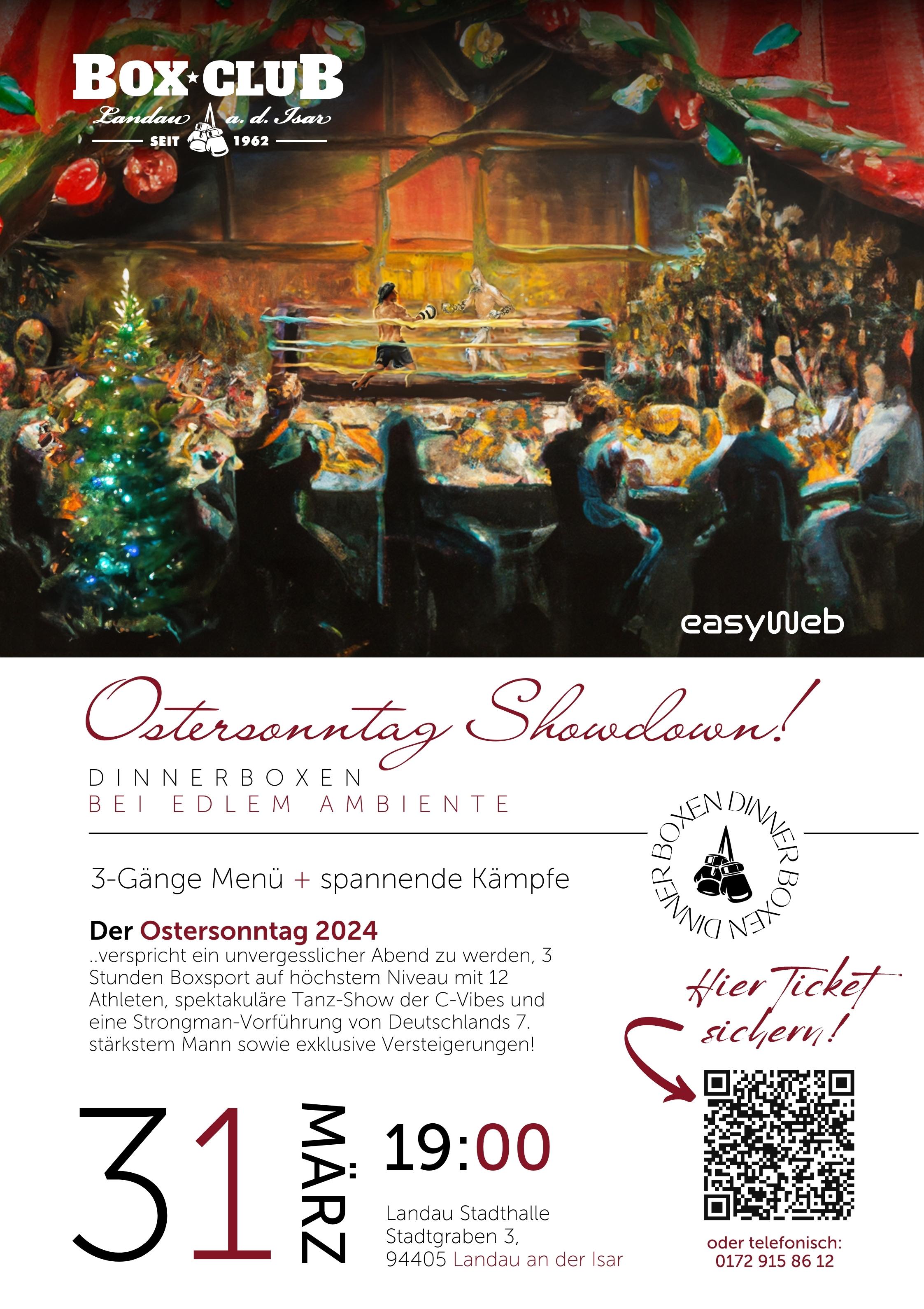 Dinnerboxen in Landau Am Sonntag, den 31.03.2024 richtet der BC Landau a.d. Isar in der Stadthalle Landau einen Vergleichskampf aus. Der Abend verspricht spannende Kämpfe sowie ein 3-Gänge-Menü.